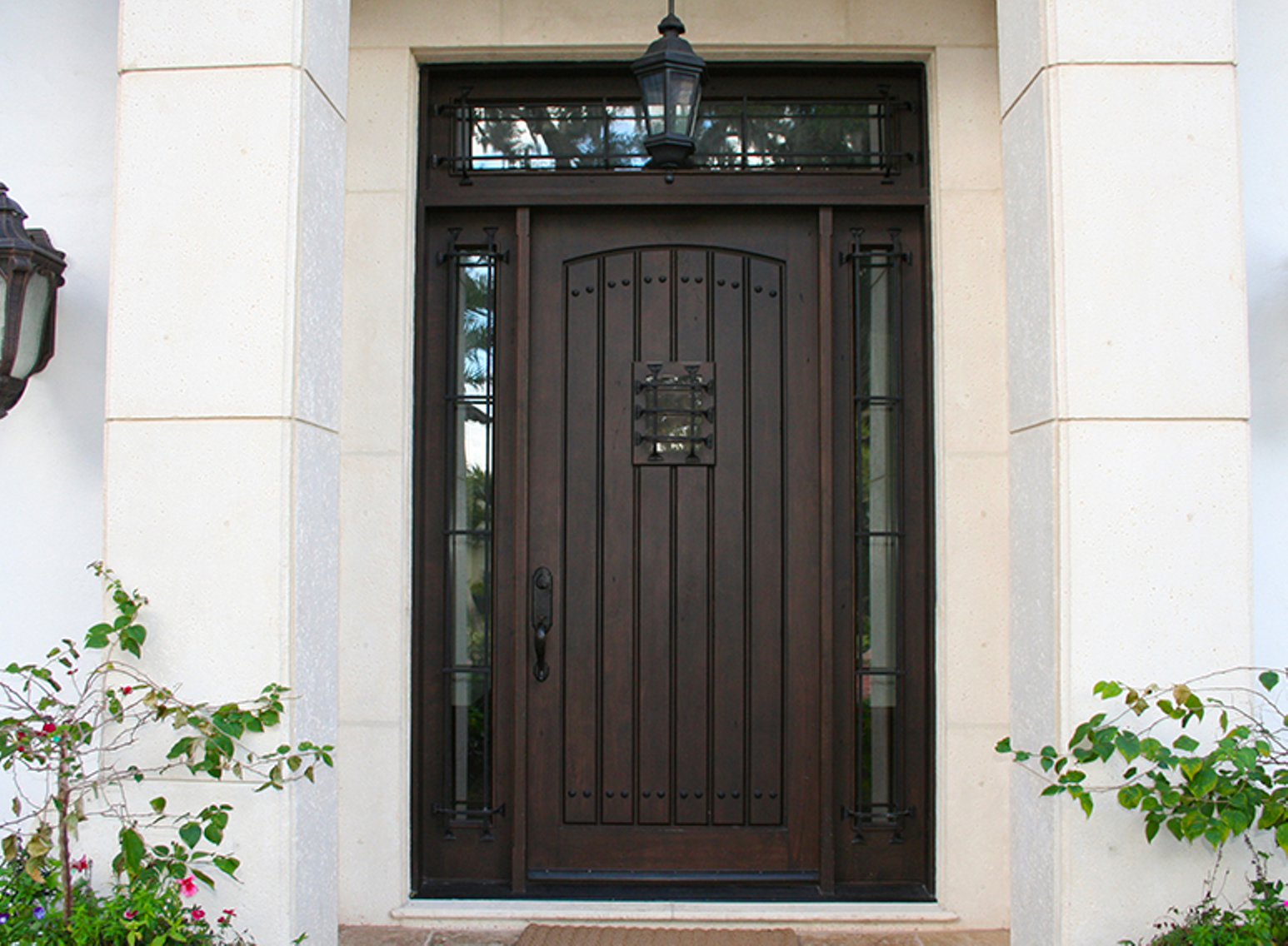 Различные декоративные элементы в виде кованых элементов, резных накладок, филенок украшают полотно и придают ему вид художественного изделия ручной работы.