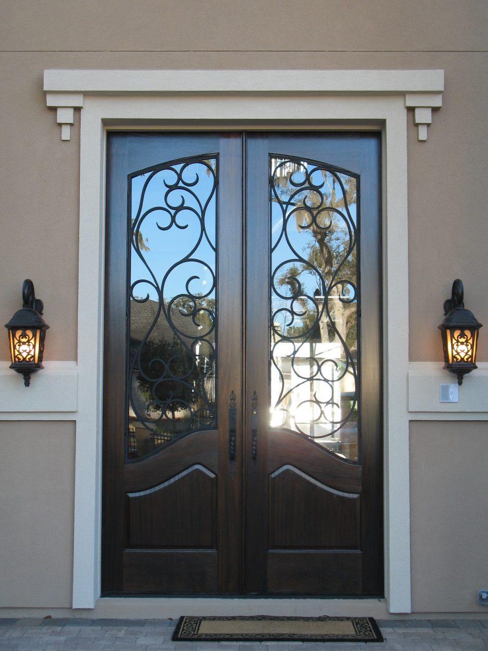 Красивые металлические двери со стеклом устанавливаются в Ермолине на входах в загородные дома, коттеджи, рестораны, магазины. Если на лестничной площадке предусмотрена тамбурная прочная дверь, тол остекленную модель можно купить и для квартиры. Для увеличения уровня противовзломной защиты зона остекления закрывается кованой декоративной решеткой, соединенной с железным листом внутри створок.